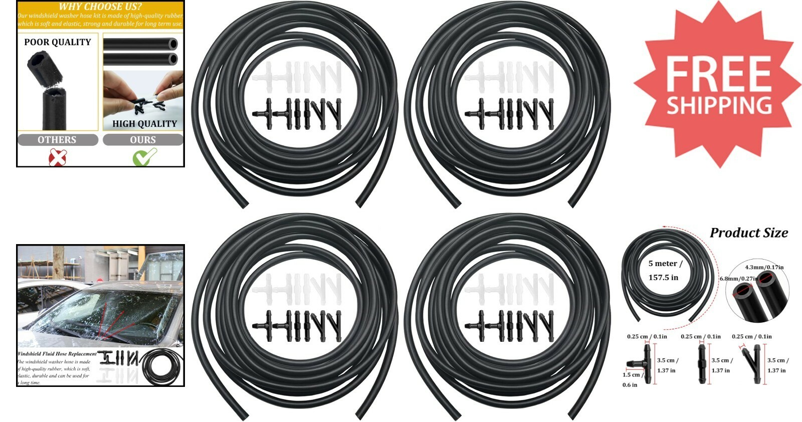 Items Included: Hose Connectors,4 x 4M Washer Fluid Hoses,48 x Hose Connectors,16 x T type Connectors,16 x Y type Connectors,16 x I type Connectors