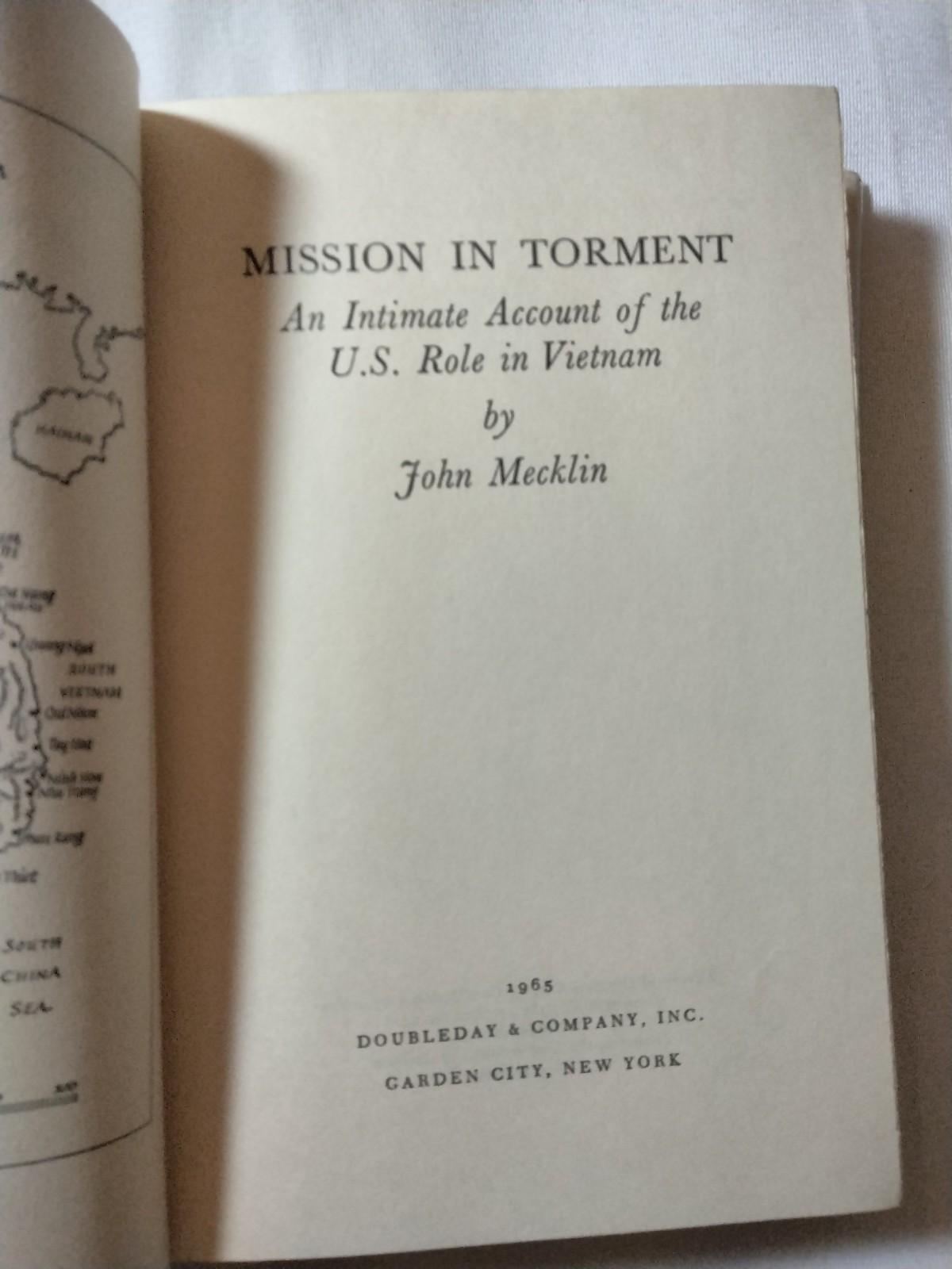 Mission in Tormet : An Intimate Account.. by John Mecklin 1965 HC