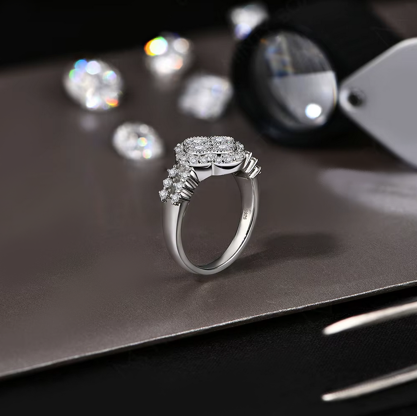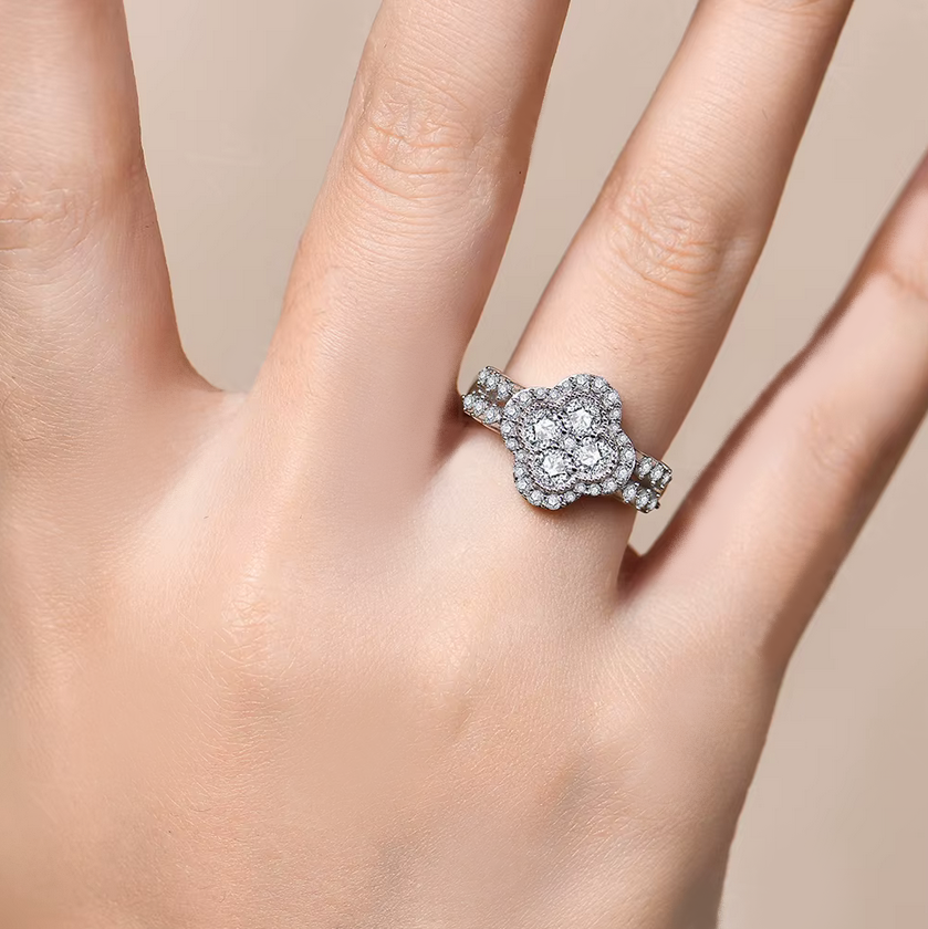 Luxury 18K 925 Sterling Silver 0.8CT Classic Clover Full Moissanite Ring (6-10)