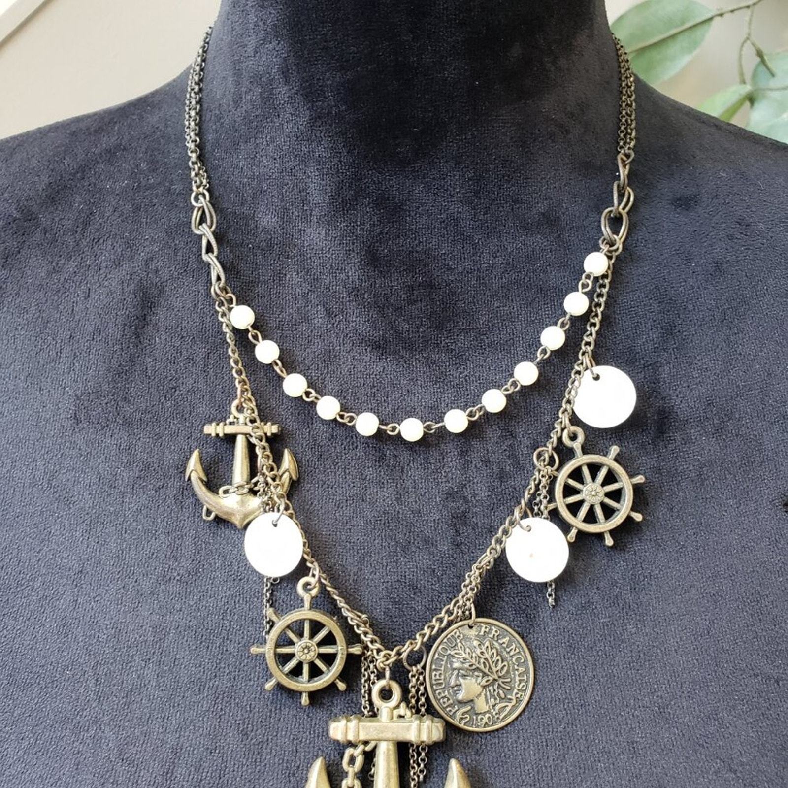 Womens Gold Tone Nautical Themed Charms Anchor Pendant Necklace w/ Lobster Clasp.