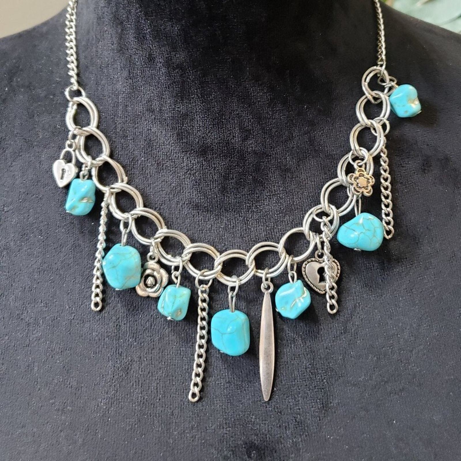 Womens Blue Turquoise Crackle- Southern Sweetheart Charm Necklace with Lobster.