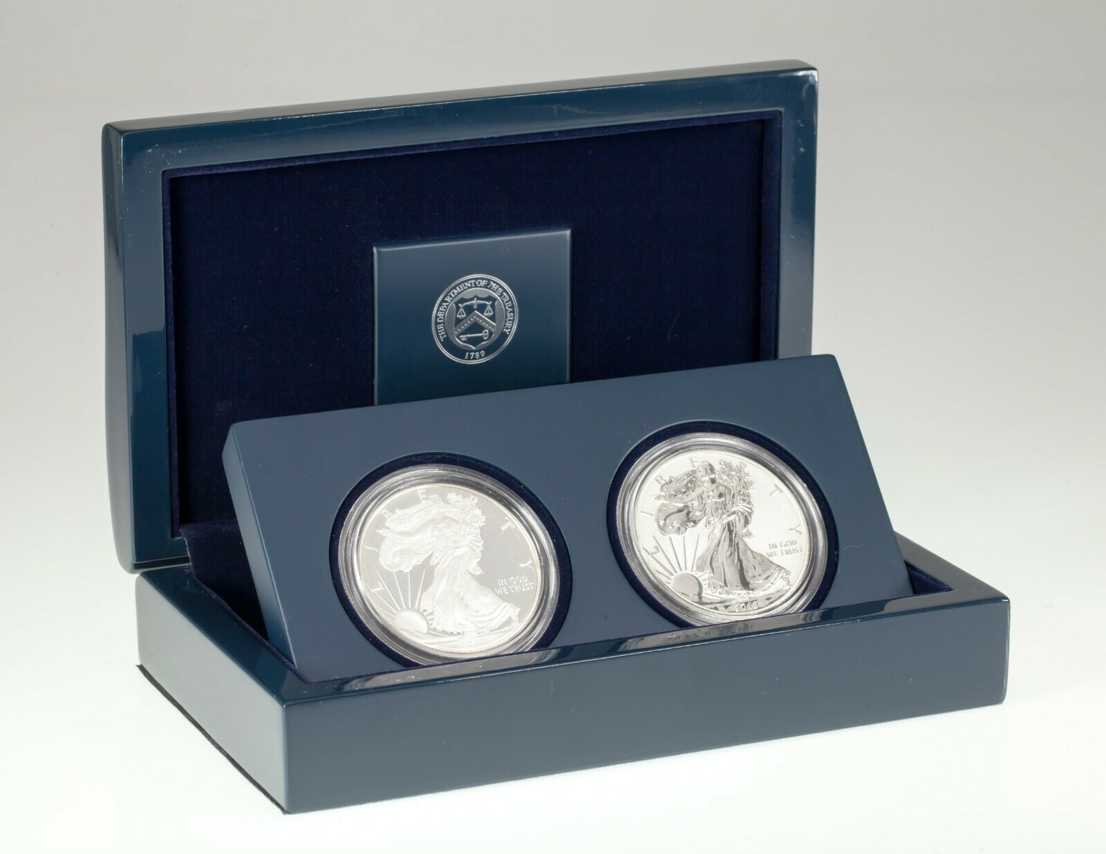 2012-S American Eagle Two-Coin Silver Set w/ Box, CoA, and Case