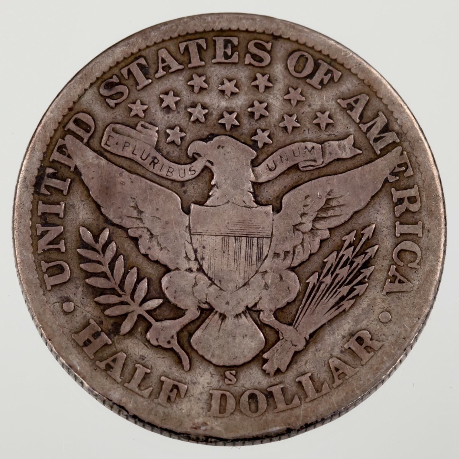 1908-S 50C Barber Half Dollar in Fine Condition, Natural Color