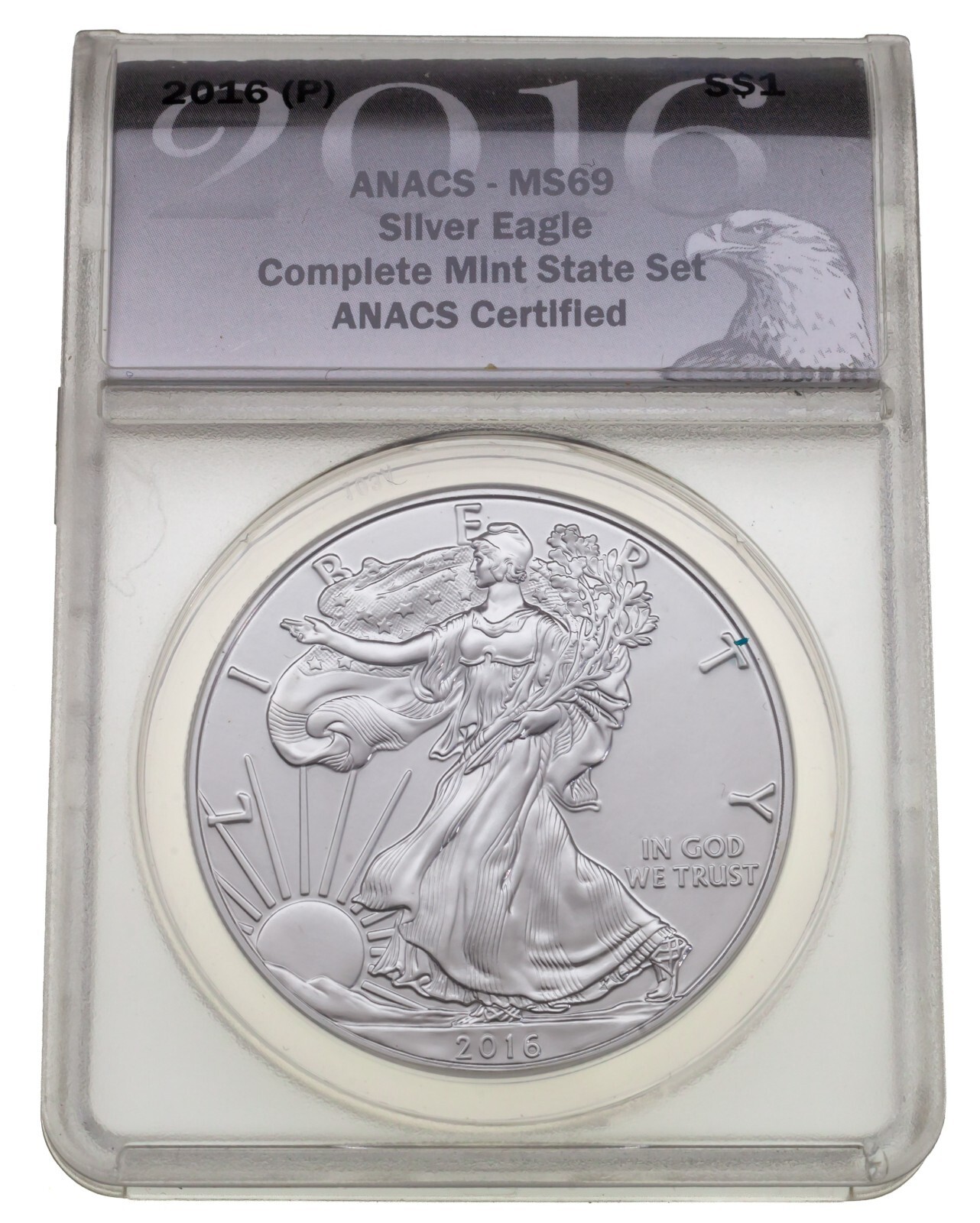 2016-(P) Argent American Eagle Classé Par Anacs Comme MS69 État Kit