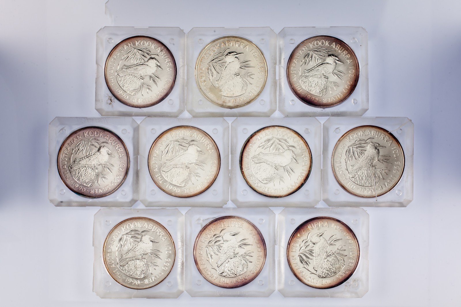 Lotto Di 10 1990 Australia $5 Argento 1oz Kookaburras (Condizioni BU) KM# 189