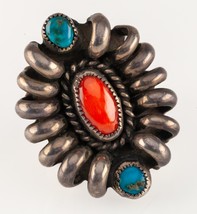 Vintage Navajo Argento Sterling Turchese E Corallo Anello Misura: 6.50