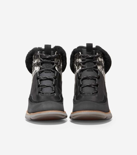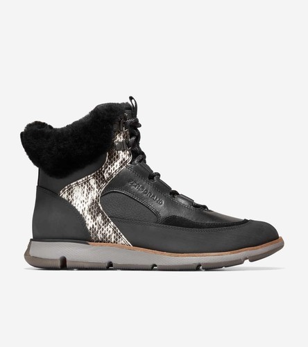 Cole Haan Women 4.Zerogrand Leather Hiker WR Black Suede/Snake Print W22527