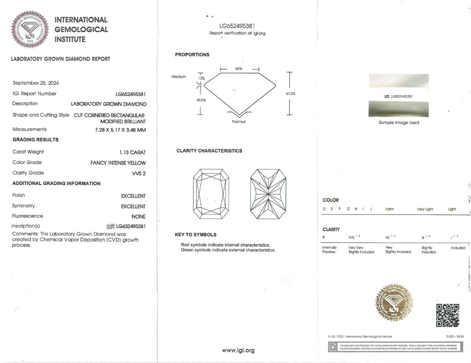 IGI 1.68 CTW (1,13) Radiant fantaisie intense jaune en diamant cultive en diamant 14k or