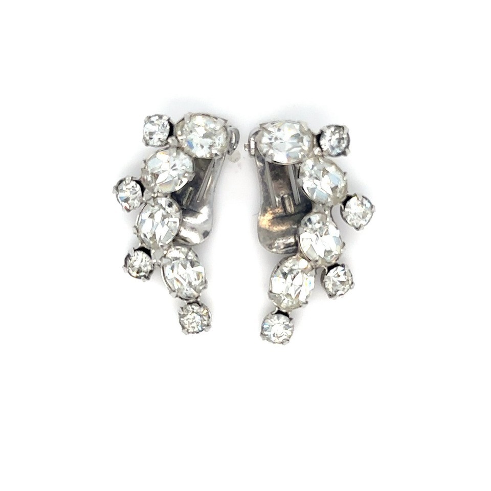 Chacun avec quatre grandes strass ovales et quatre petites strass rond avec des clips d'oreille en metal argente chacun signe "Weiss".