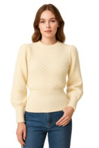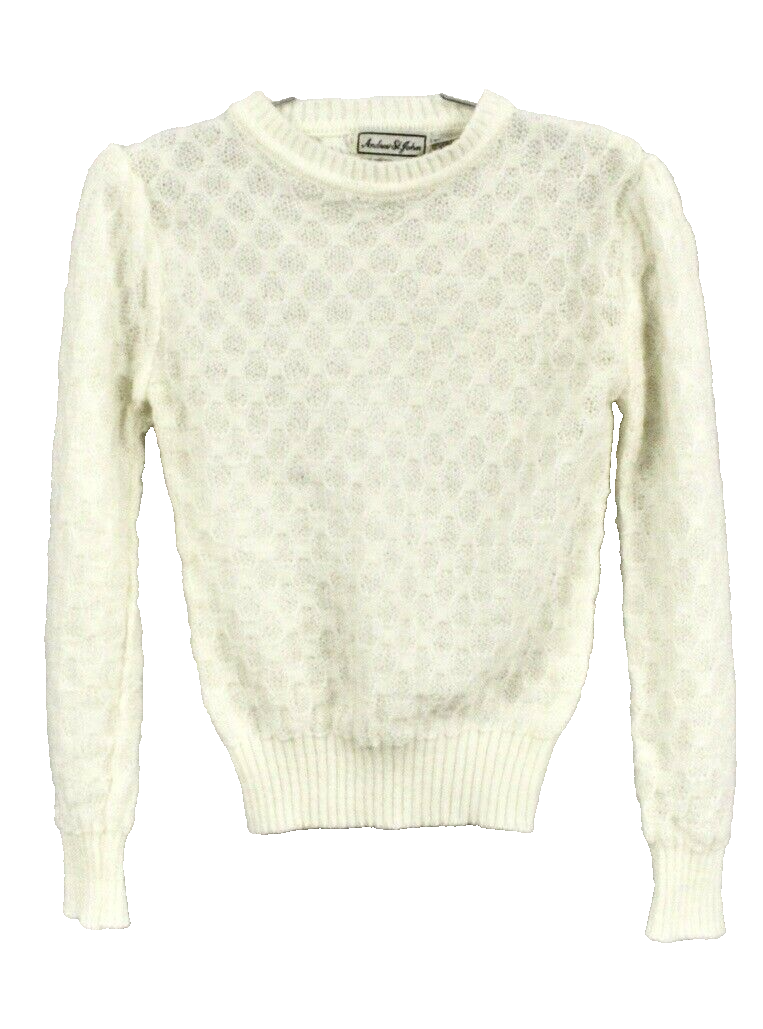 VTG 70s Andrew St John Ivory Knit Sweater Wide Waistband Puff Sleeve S 30s look