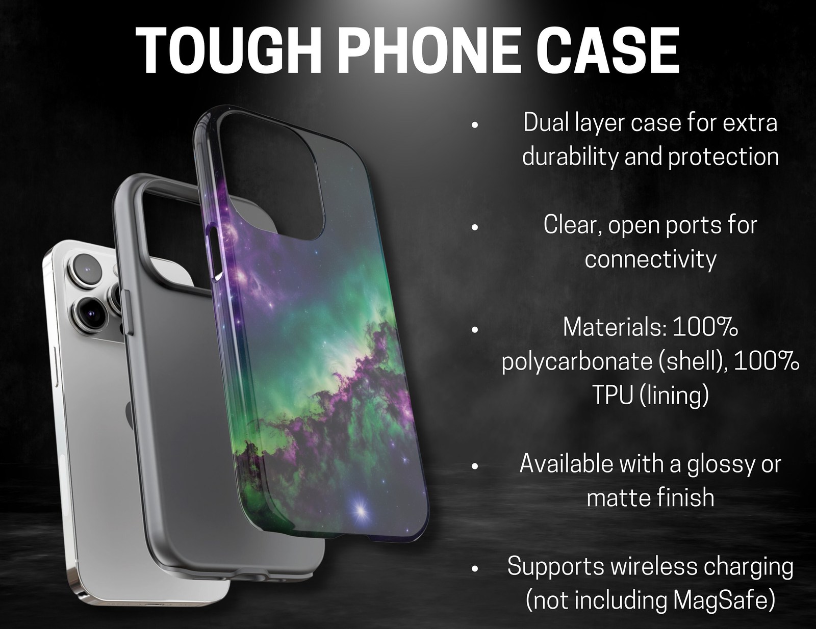 Step into the enchanting realm of outer space with our mesmerizing phone case design featuring a breathtaking backdrop of nebulae, galaxies, and stars. With the option to personalize, you can make this celestial masterpiece uniquely yours, adding a touch of cosmic flair to your everyday essentials. Elevate your style and spark conversation wherever you go.