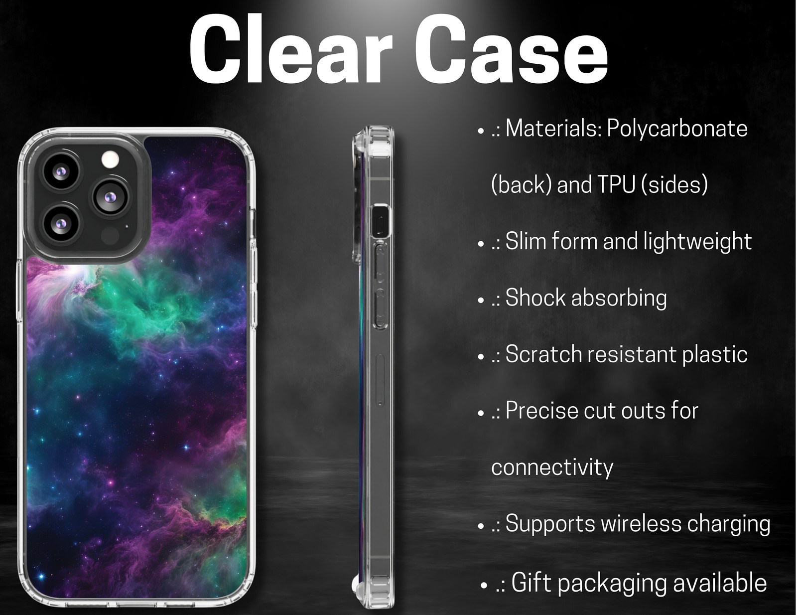 Step into the enchanting realm of outer space with our mesmerizing phone case design featuring a breathtaking backdrop of nebulae, galaxies, and stars. With the option to personalize, you can make this celestial masterpiece uniquely yours, adding a touch of cosmic flair to your everyday essentials. Elevate your style and spark conversation wherever you go.
