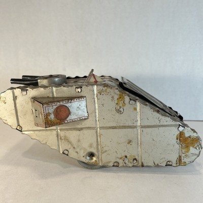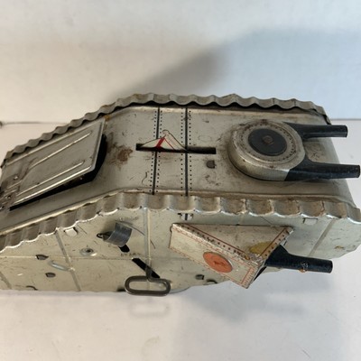 Vintage 1930s Marx Tin Litho Wind-Up Doughboy Tank – Silver – Works