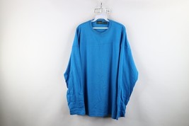 Vintage 90s J Crew Mens XL Blank Cotton Ribbed Knit Long Sleeve T-Shirt Blue