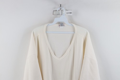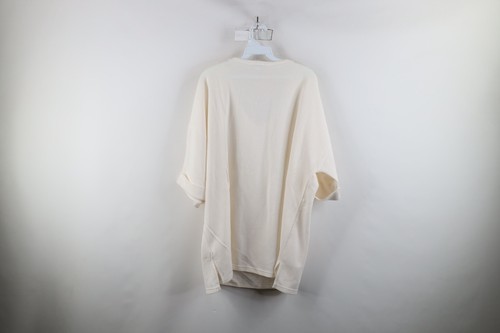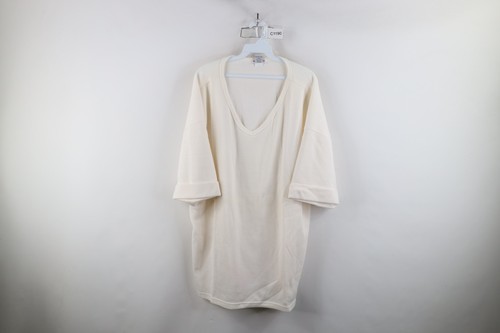 Vintage 90s Express Womens Large Blank Baggy Thermal Waffle Knit T-Shirt Cream