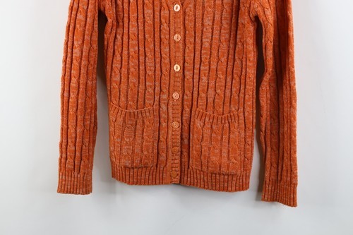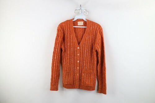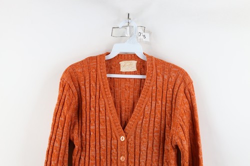 Vtg 70s Mid Century Modern MCM Womens M Blank Chunky Cable Knit Cardigan Sweater
