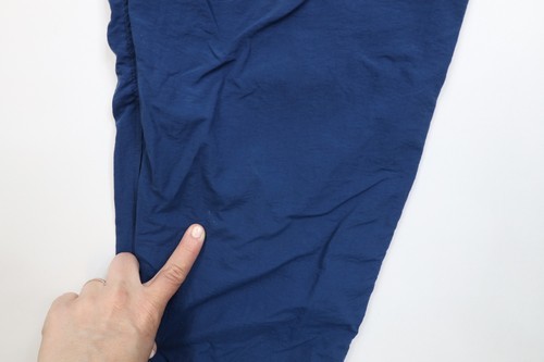 Blemishes front and back. Has pilling. Elastic on cuffs is stretched. Has color fade