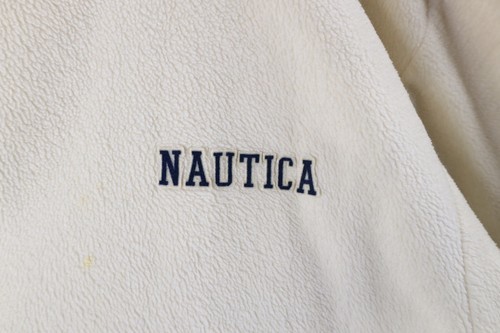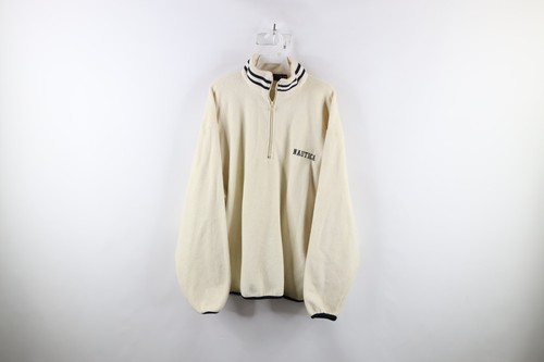 Vintage 90s Nautica Mens M Distressed Spell Out Half Zip Fleece Pullover Sweater