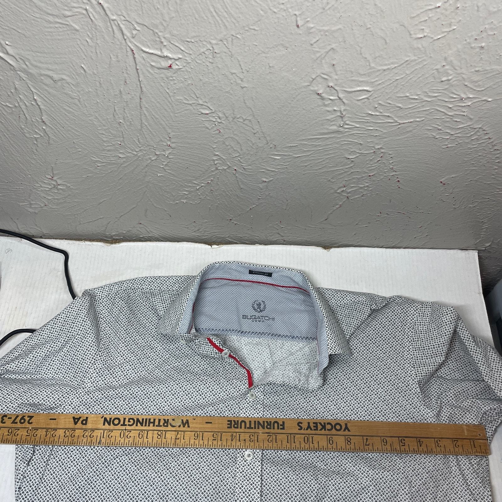 Bugatchi Uomo Gray Long Sleeve Cotton Geometric Classic Fit Shirt Mens Size XL