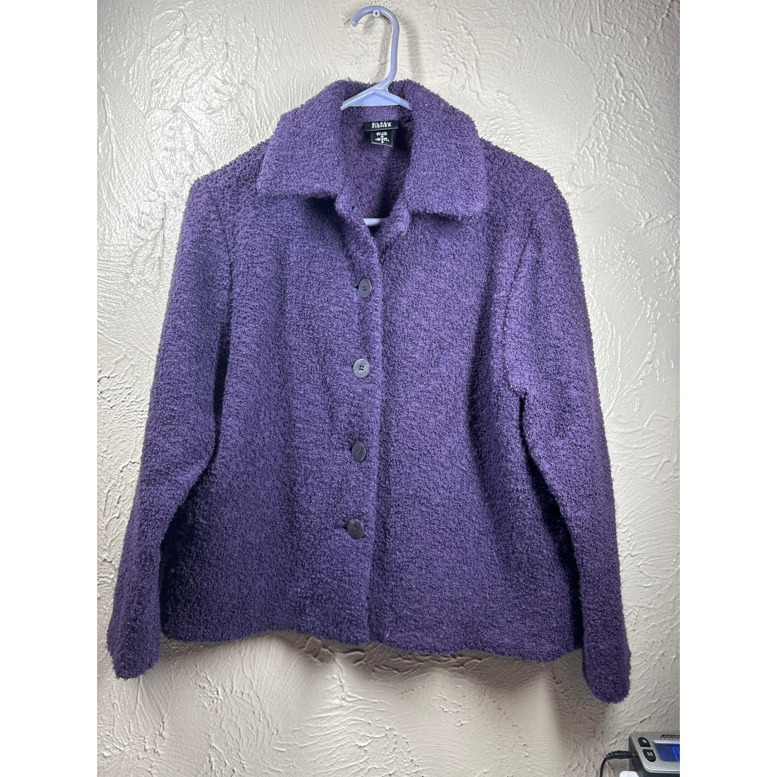 Eileen Fisher Women's Textured Wool Jacket Medium Dark Purple Button Front Small