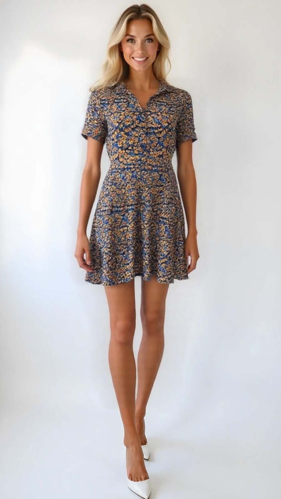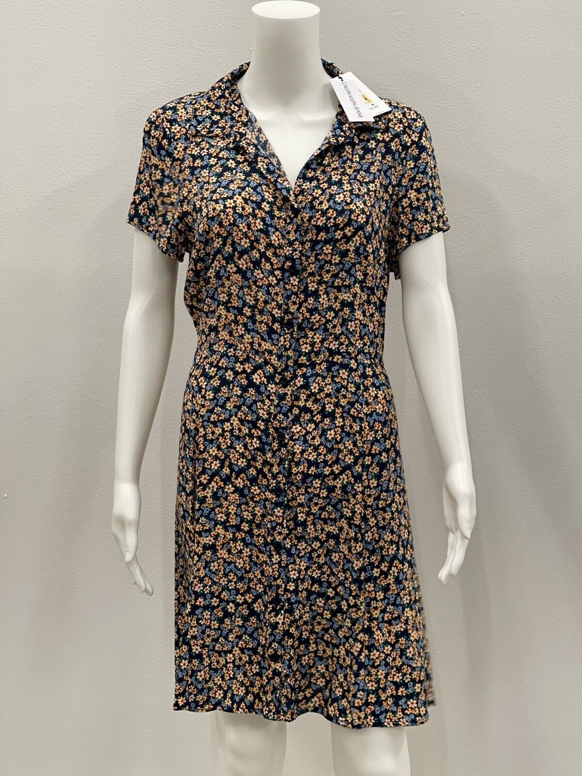 Calvin Klein Multicolor Floral Print Button Front Short Sleeve Mini Dress