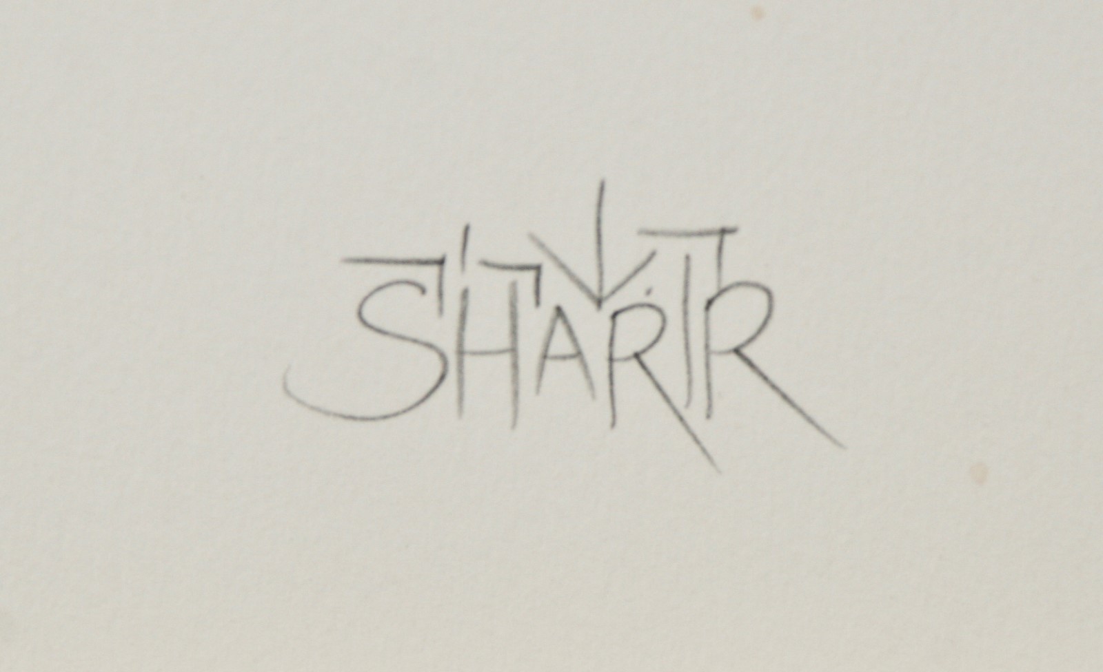David Sharir est ne en 1938 en Israel, fils d'immigrants russes. Il a commence son etude de l'art a Tel Aviv et a continue a Florence et Rome où il a etudie l'architecture et le design theatral. Ses conceptions de sets incluent des productions telles que Peer Gynt pour les Habima, le National Theatre d'Israel (1970-71) et Hansel et Gretl pour l'Opera Company de Boston (1978-79). Les costumes aux couleurs vives et les designs de scene complexes qu'il a crees pour ces productions ont profondement influence son art. En 1966, Sharir a demenage a Jaffa et c'est ici que son style caracteristique a ete vraiment developpe. Son studio, sa famille et sa devotion spirituelle servent toutes d'inspiration a l'imagerie dans son travail. Son style en evolution combine l'experience personnelle, le symboli