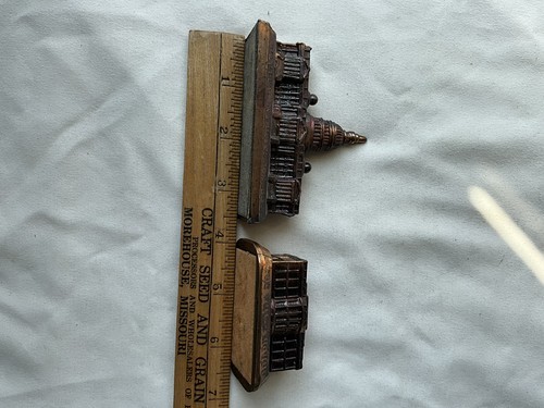 This is a lot of two different vintage souvenir paper weights. They are copper colored with felt on the bottom of one. One is marked Japan and the other is not. Both are in good used vintage condition and great for a collection or decor. No issues with either just need a good cleaning