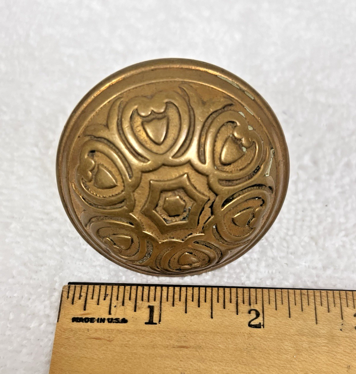 Single Victorian Brass Doorknob Hearts Shields 2 1/4" In nice shape it could use a good cleaning, but it feels good in the hand