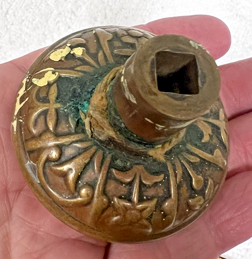 Single Victorian Brass Doorknob Floral Plus Design 2 1/4" In nice shape it could use a good cleaning, but it feels good in the hand