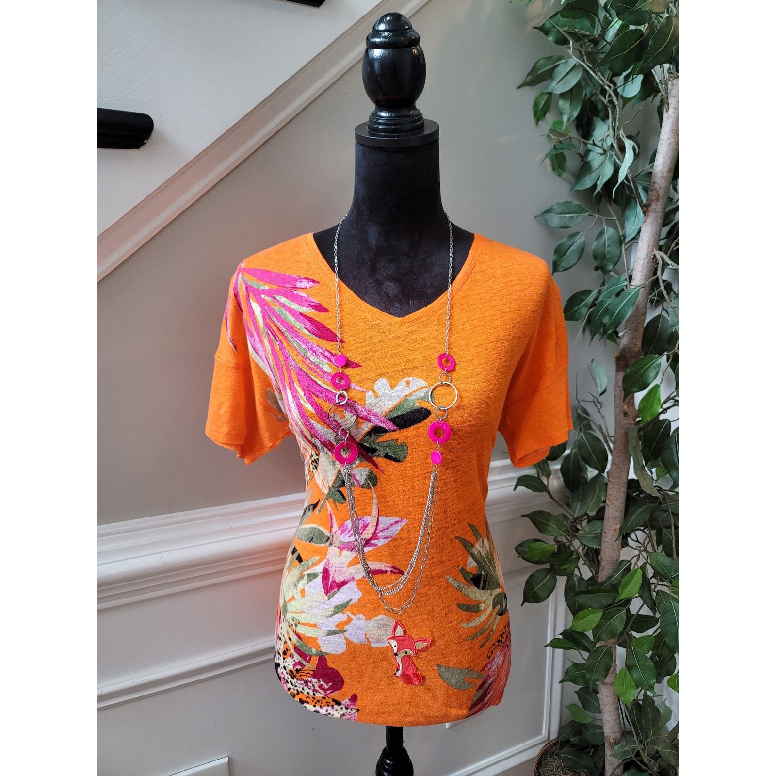 Chicos Top Women's Size 0/Small Orange Linen and 50 similar items
