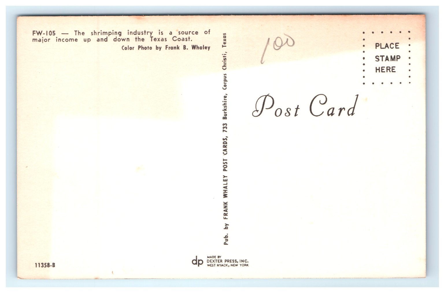 Keywords: Texas shrimping postcard, Frank B. Whaley photo, Texas Coast boats, Dexter Press lithograph, vintage maritime postcard.