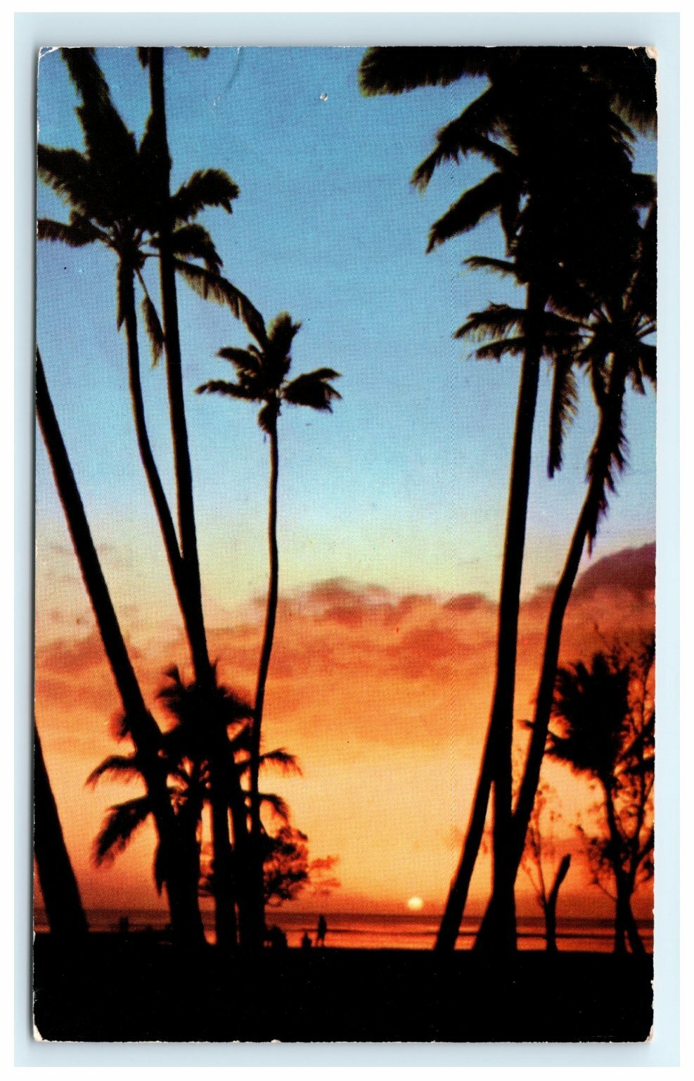 Perfect for collectors of Hawaiian or tropical postcards, vintage chrome postcards, or mid-century ephemera, this card captures the serene beauty and nostalgic charm of Hawaii's sunsets.