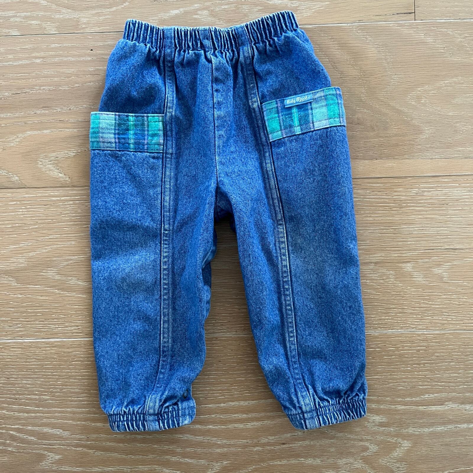 Vintage Oshkosh B’gosh Denim Jeans Bubble Snap Plaid Baby Toddler 18 mo