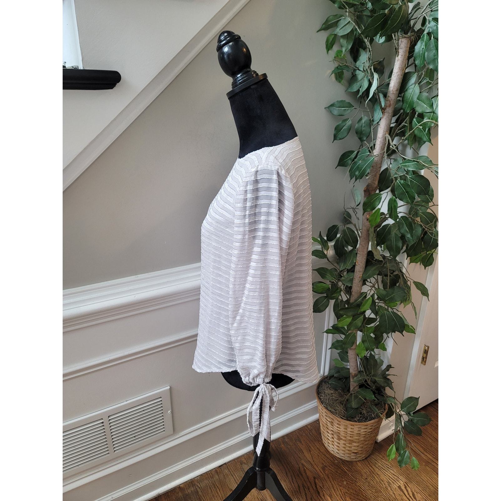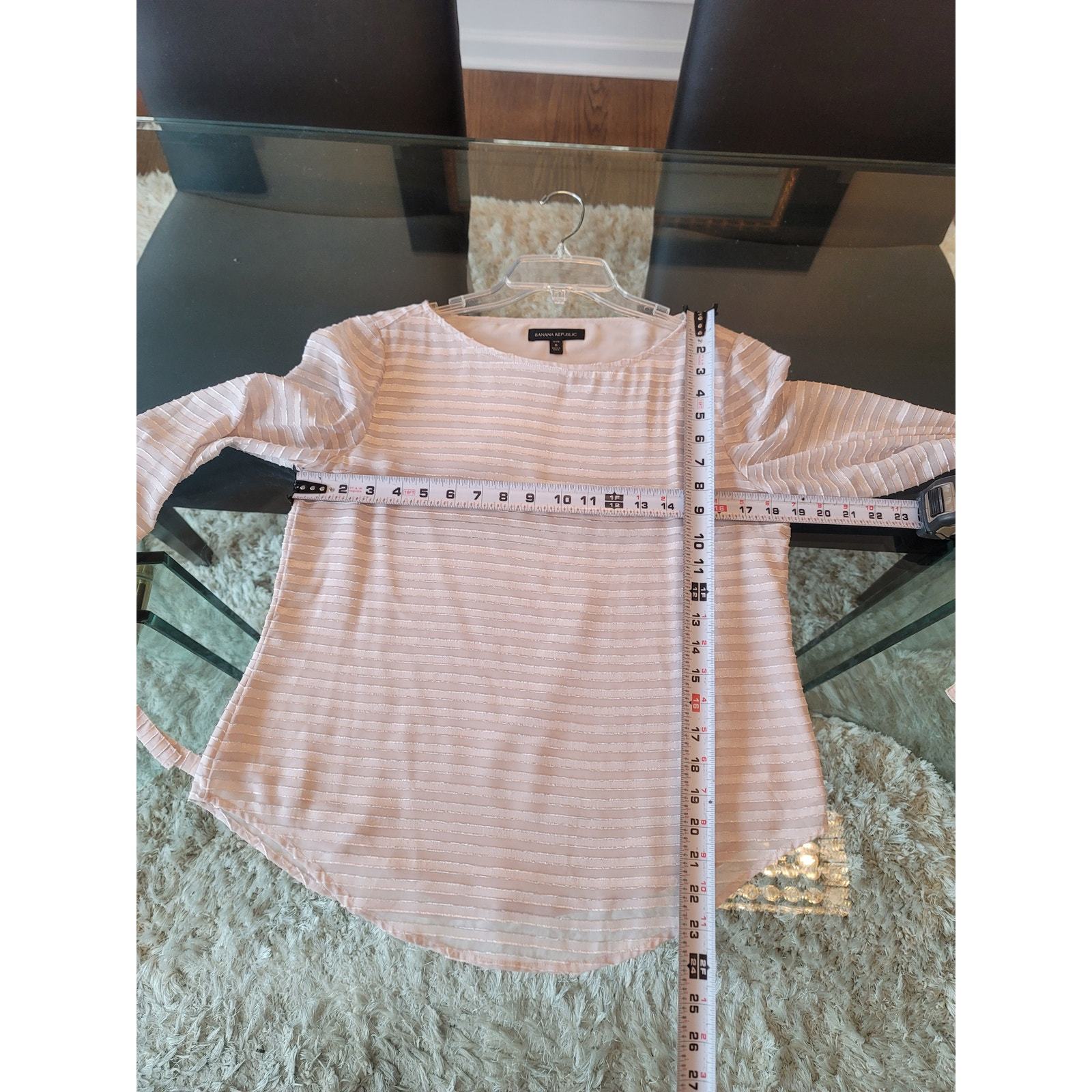 Banana Republic Blouse Women's Petite Small White Sheer Stripe Long Sleeve Top