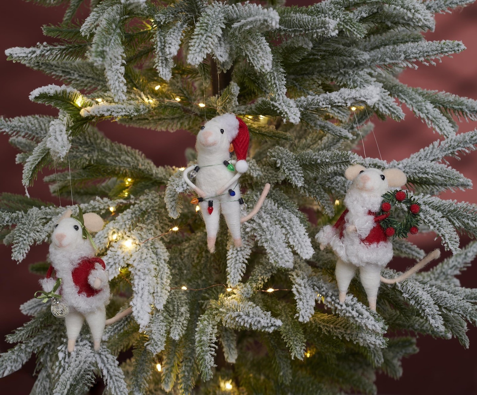 ornament and wreath with felt berry details. Our Claus Family Mice critter set