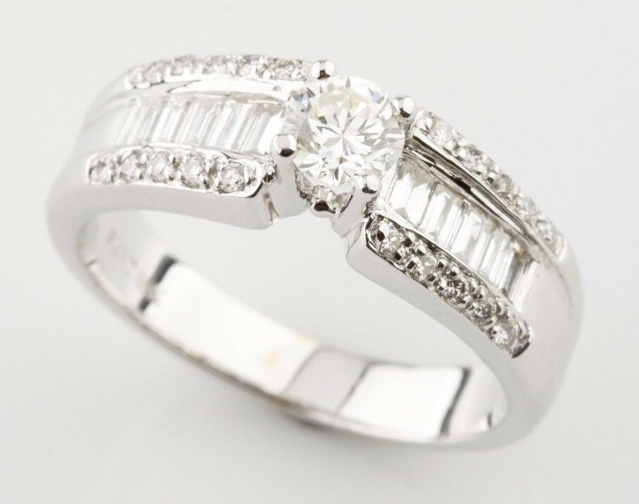 18k White Gold Diamond Solitare Ring Accents Sz 6.5 TDW = 0.83 ct Amazing Deal!