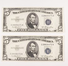 1953 Silver Certificate Lot of 2 Consecutive in Choice Uncirculated Condition