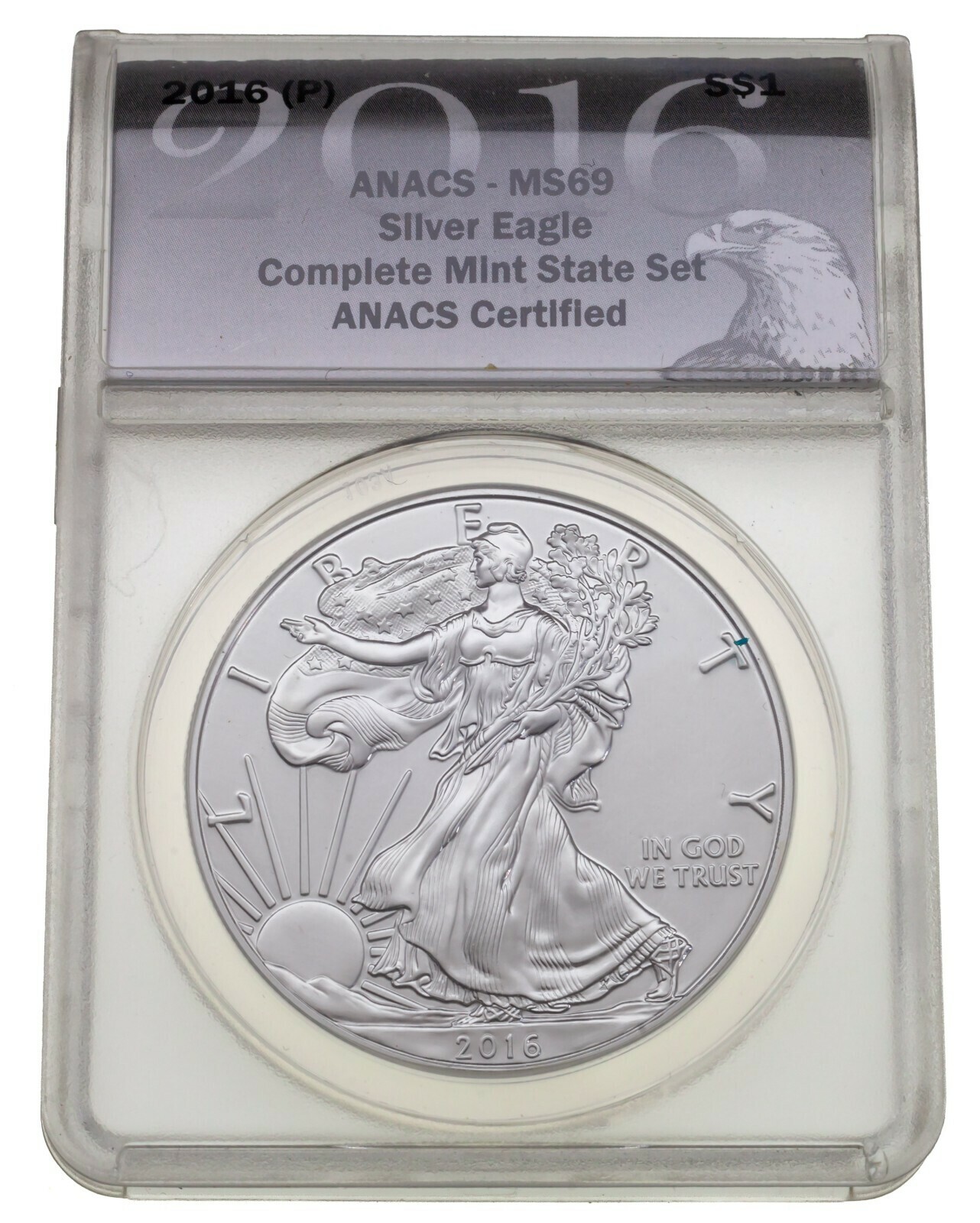 2016-(P) $1 Silver American Eagle Valutato Da ANACS Come MS69 Set Di Stato