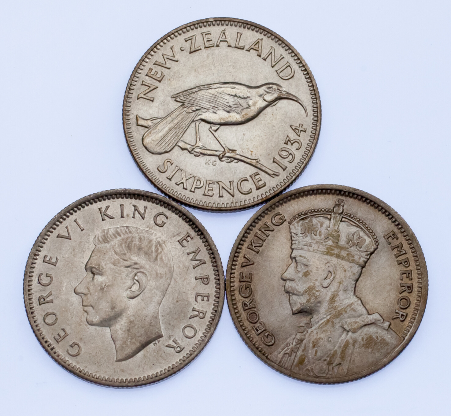 Lot de 3 pieces de monnaie en Nouvelle-Zelande 6 pence 1934 - 1943 XF - AU