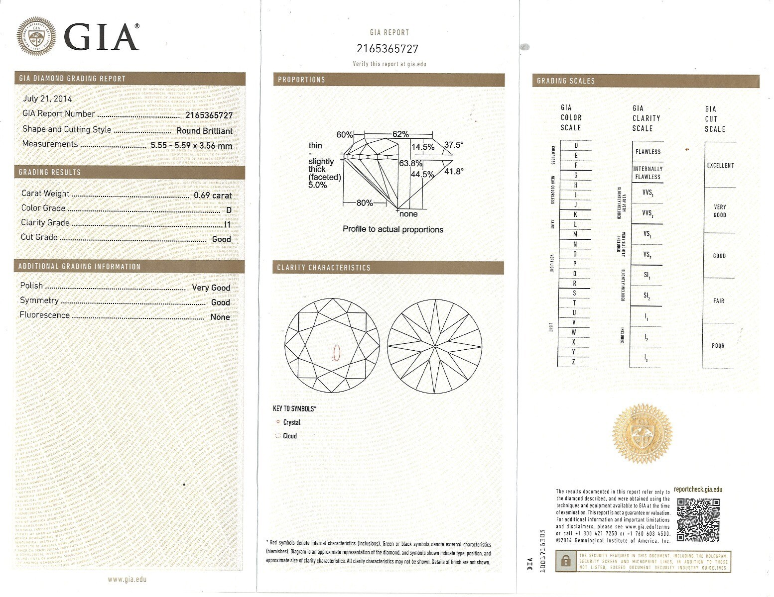 14k Oro Rosa GIA 0.69 Carato Solitario D Colore Diamante Rotondo Engagement Ring