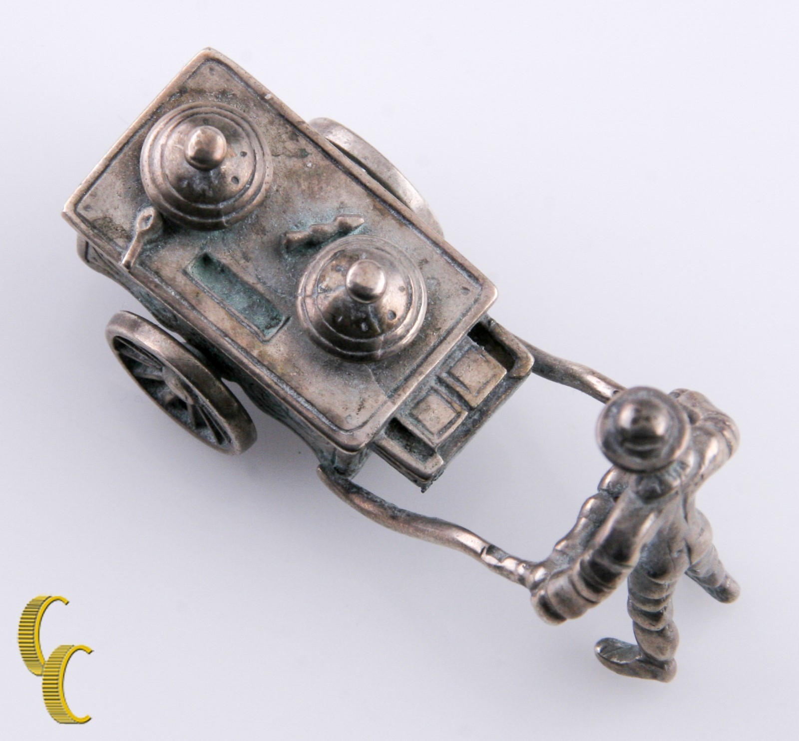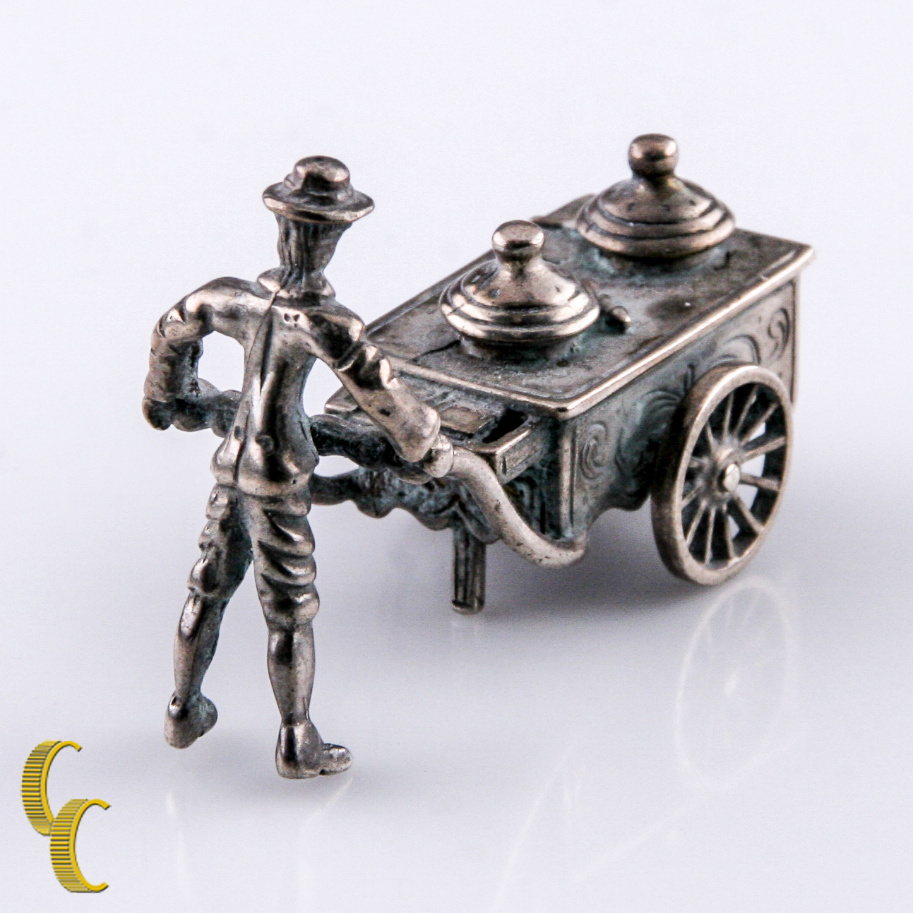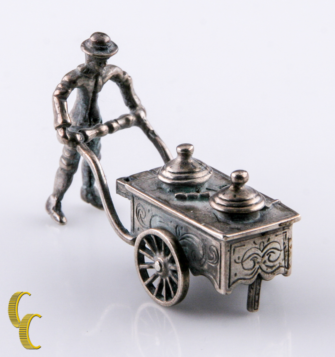 Vintage Silver Miniature Doll House Street Vendor w/Pushcart