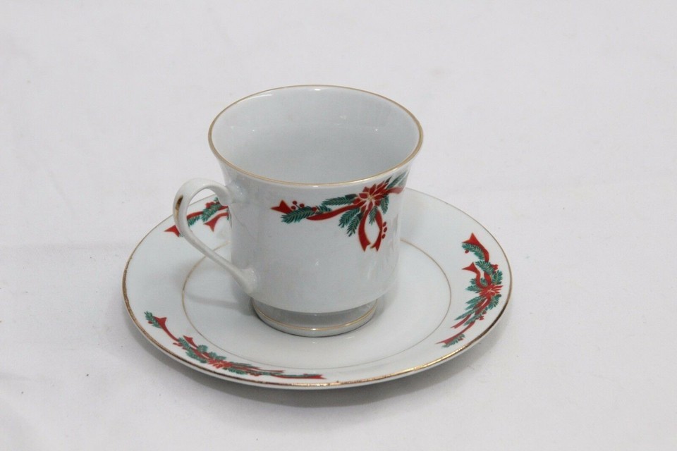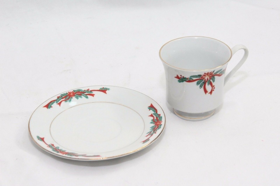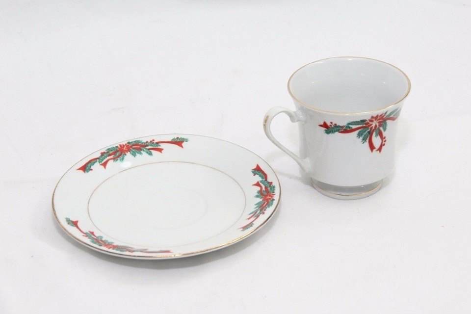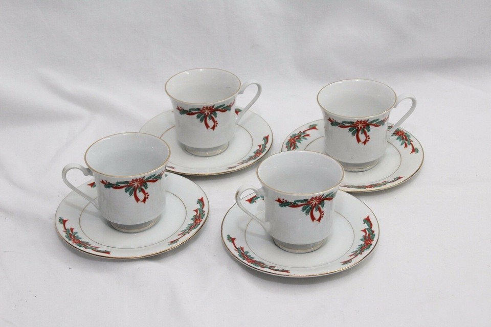 Poinsettias and Ribbons 4 Cups and 4 Saucers and 50 similar items