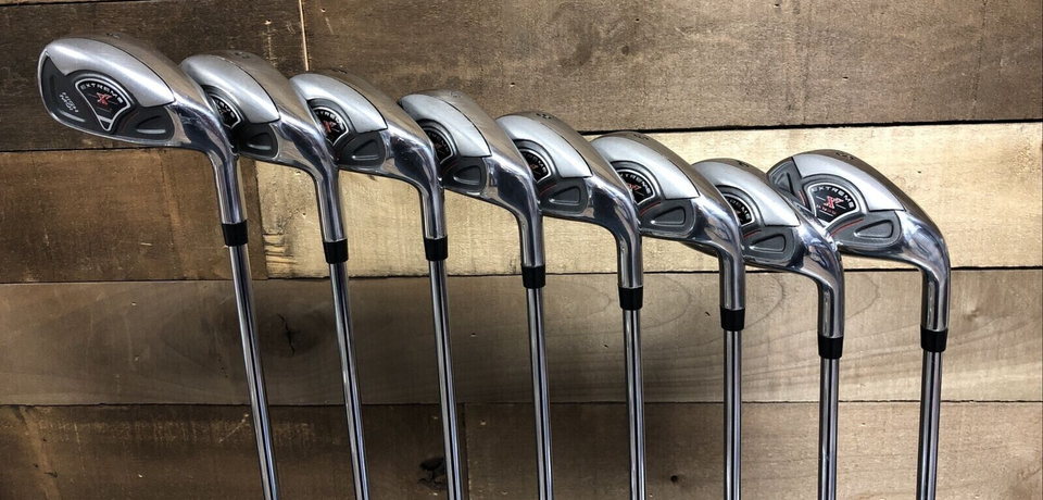 The X7 High MOI irons are constructed from two pieces resulting in a hollow body that moves significant weight to the back and bottom of the club. Two-piece metalwood-inspired construction promotes a low Center of Gravity and high Moment of Inertia. Weight is relocated to the perimeter for enhanced forgiveness. The CG is located deep behind the face for a more solid feel on impact and greater consistency. The wide sole design makes alignment at address easy and promotes a higher launch angle for increased distance. The game improvement X7 irons are designed to hit longer and straighter with more accuracy and better feel.