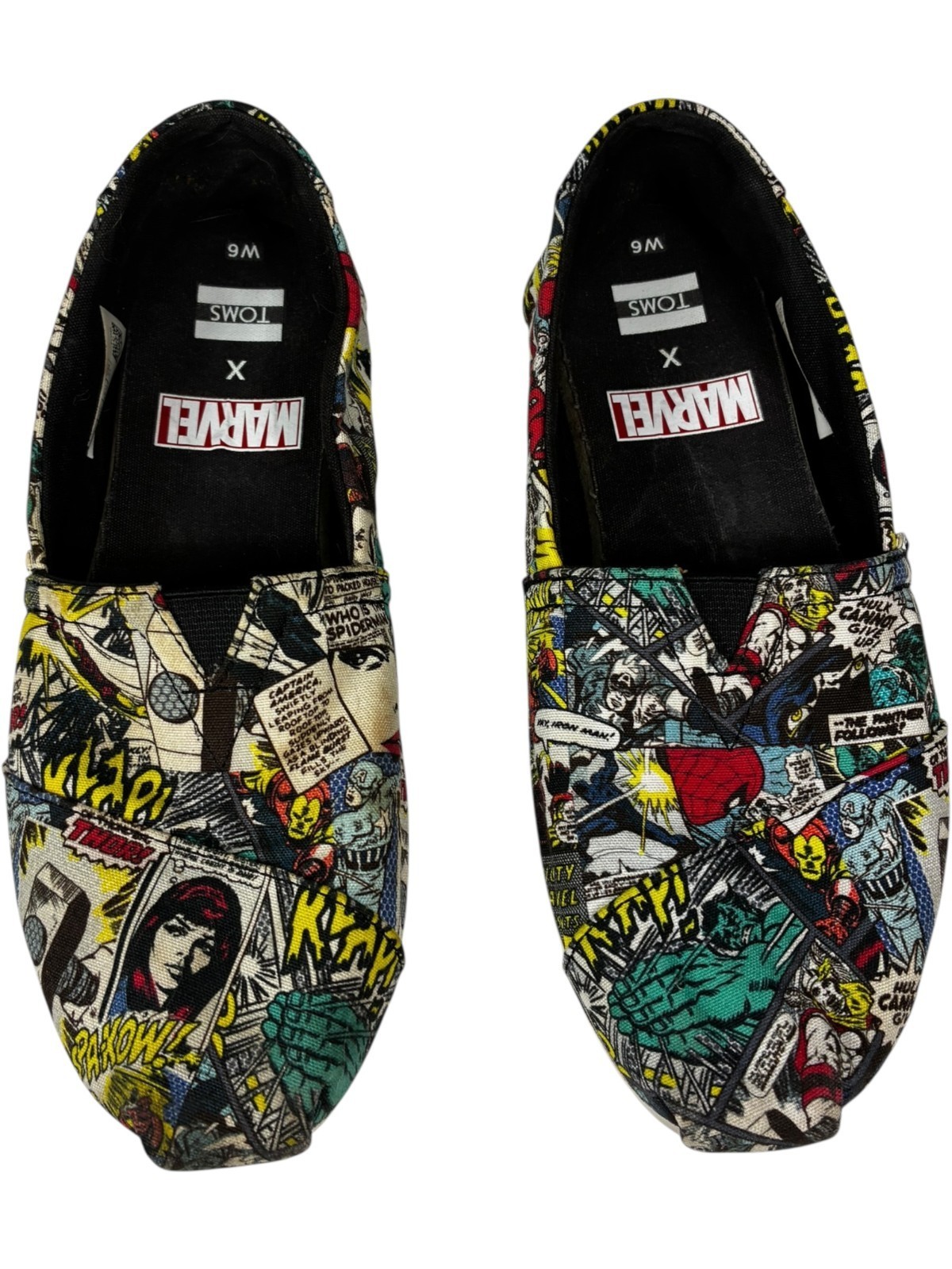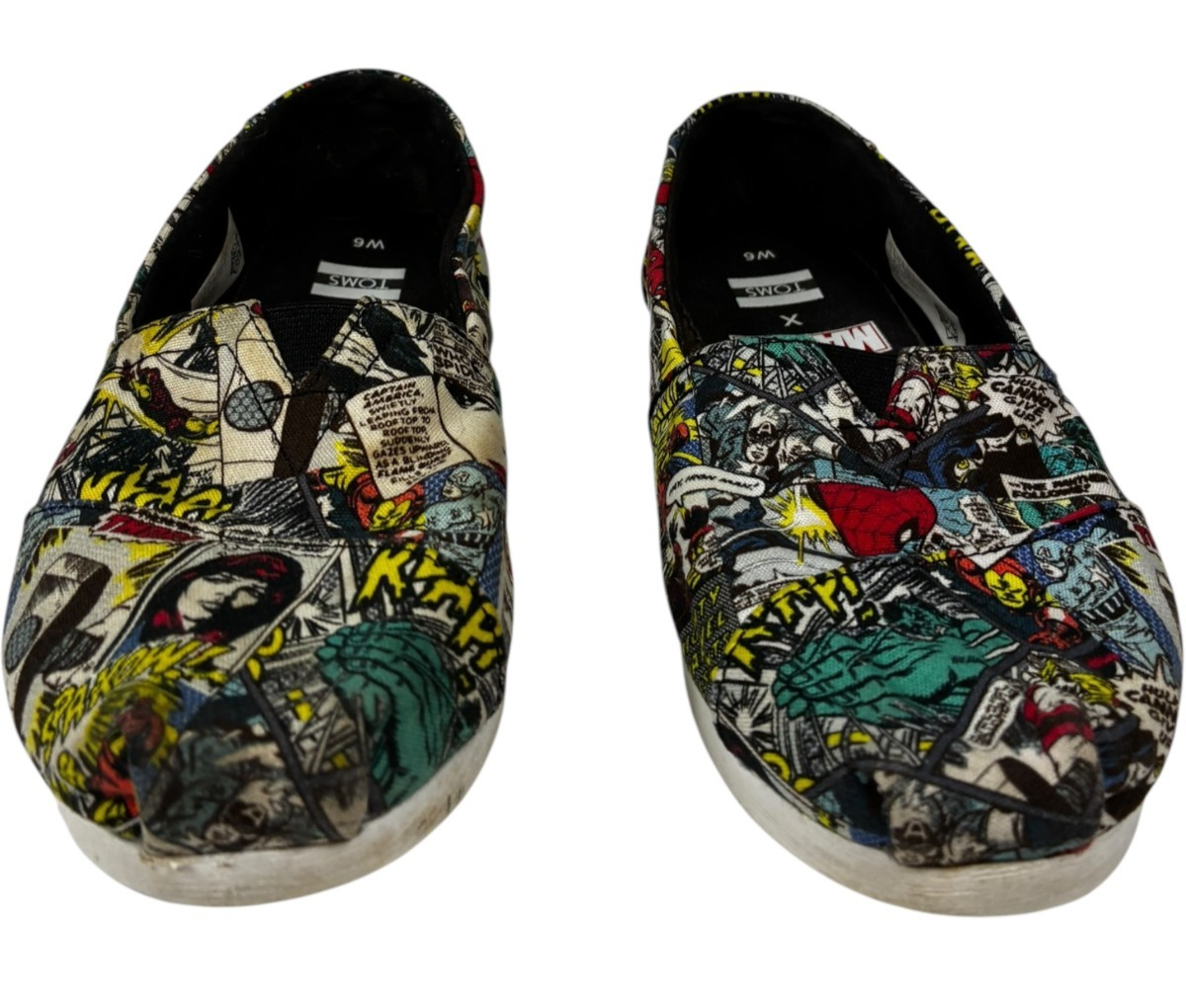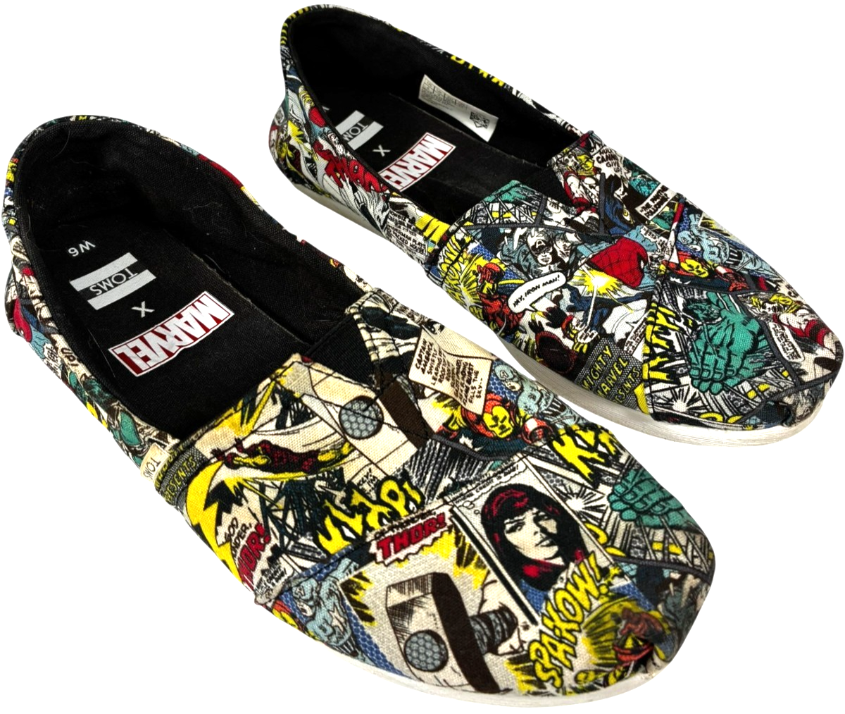 TOMS X MARVEL Women's Black Multi Marvel Comic Pop Print Classic Shoes size 6