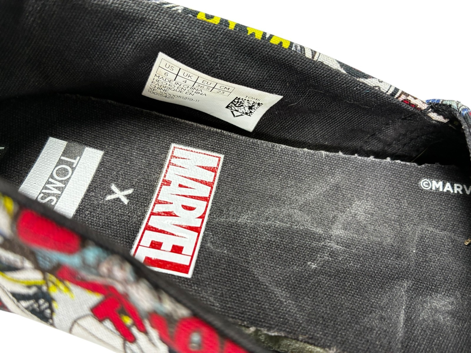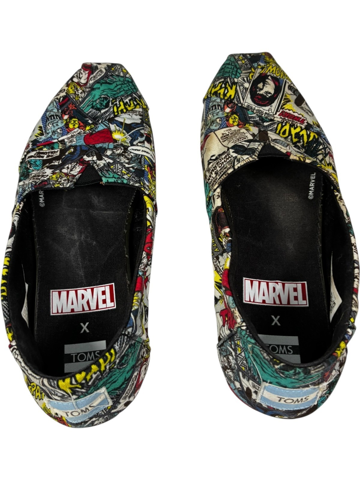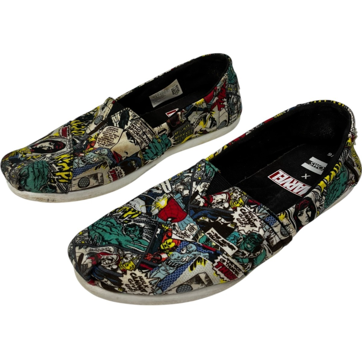 TOMS X MARVEL Women's Black Multi Marvel Comic Pop Print Classic Shoes size 6