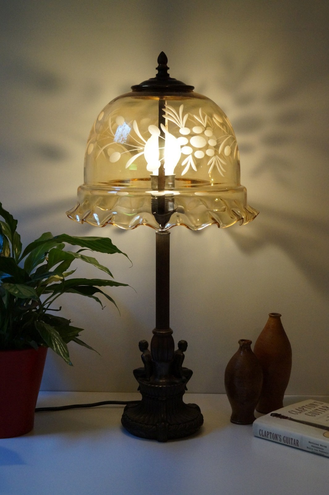 Art Nouveau Lamp Ornate Table Light "MENAGE A TROIS" 1920 Light