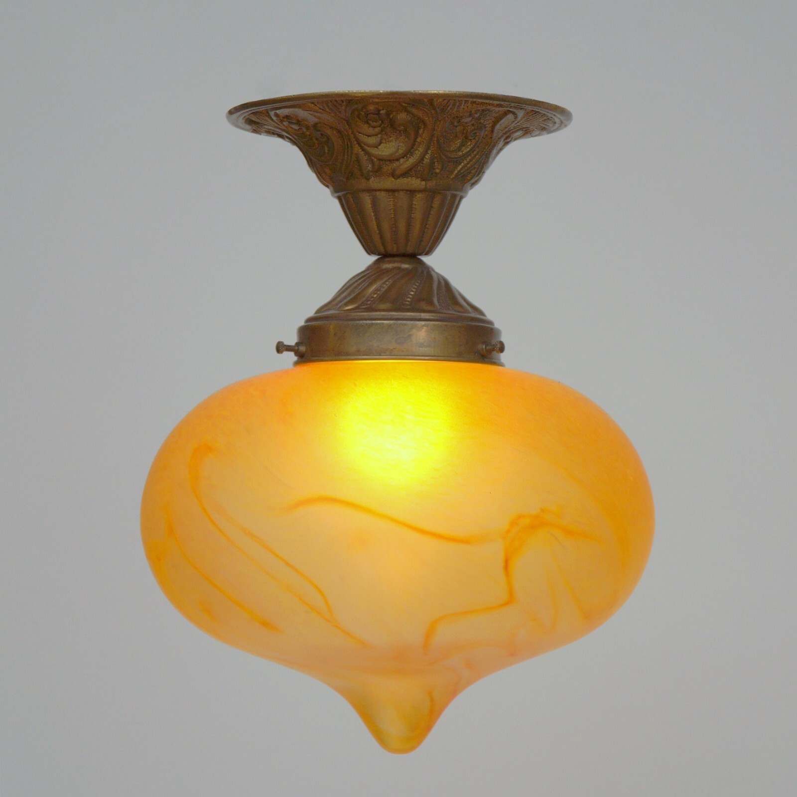 Important: We recommend using only LED lamps (filament bul!) For each of our lights. In addition to that of up to 12 times higher efficiency, the very low heat development of an LED bulb ensures the lifespan of the electrical system and the precious original glasses of its lamp. LED lamps available everywhere or here . Also suitable for LED/energy-saving bulbs with higher light output. Sale without decoration and lamp! Further Art Nouveau lights in our shop.