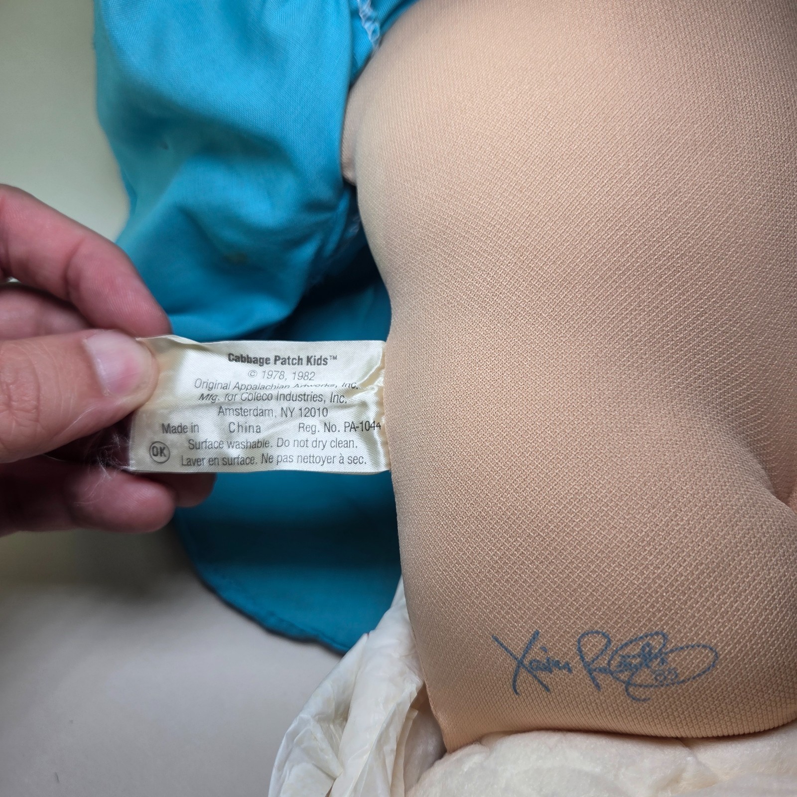 1982 Cabbage Patch Kid Coleco #190589 Blue Dress Red Tights Xavier Signed