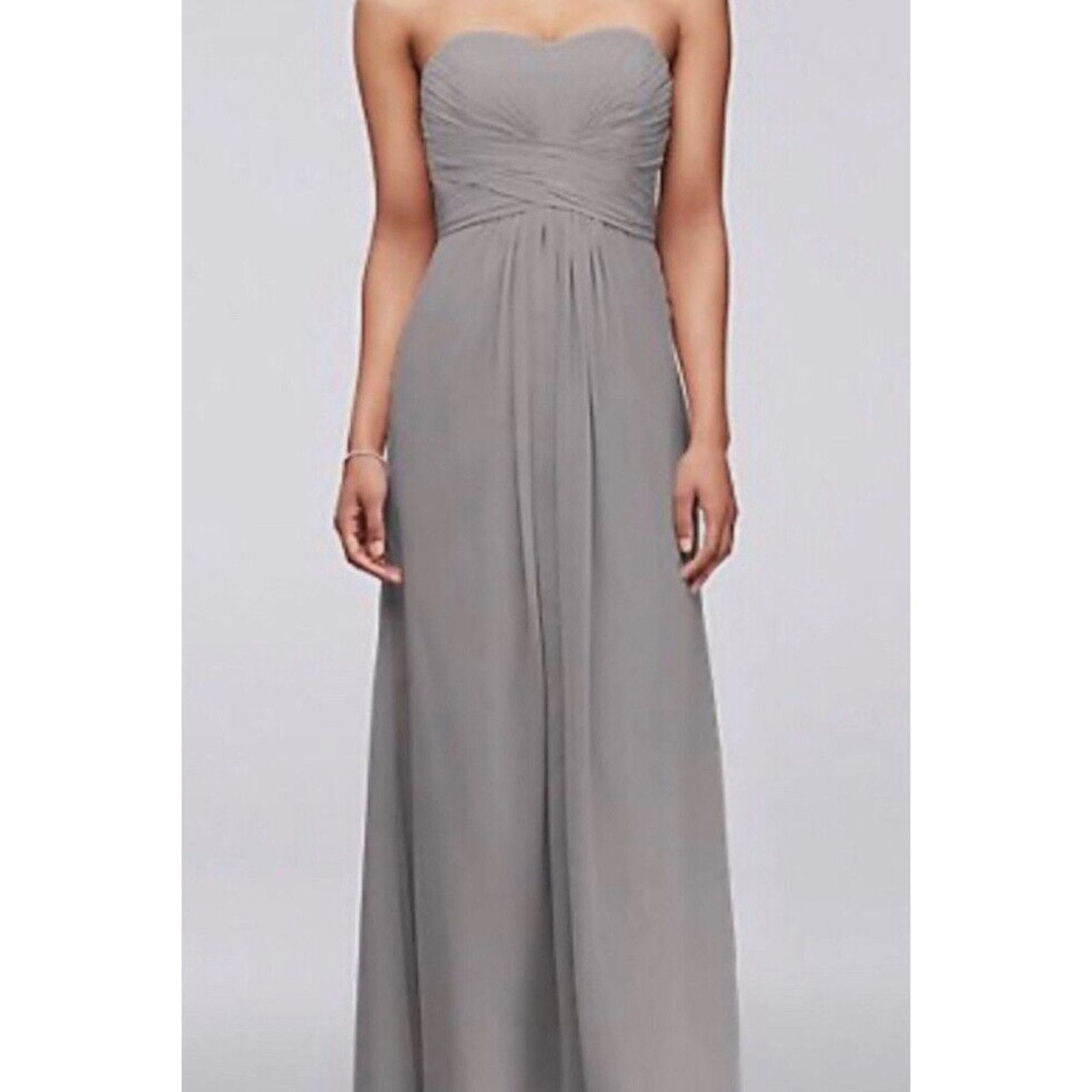 David's Bridal Long Strapless Chiffon Dress Pleated Bodice Gray Mercury Size 4