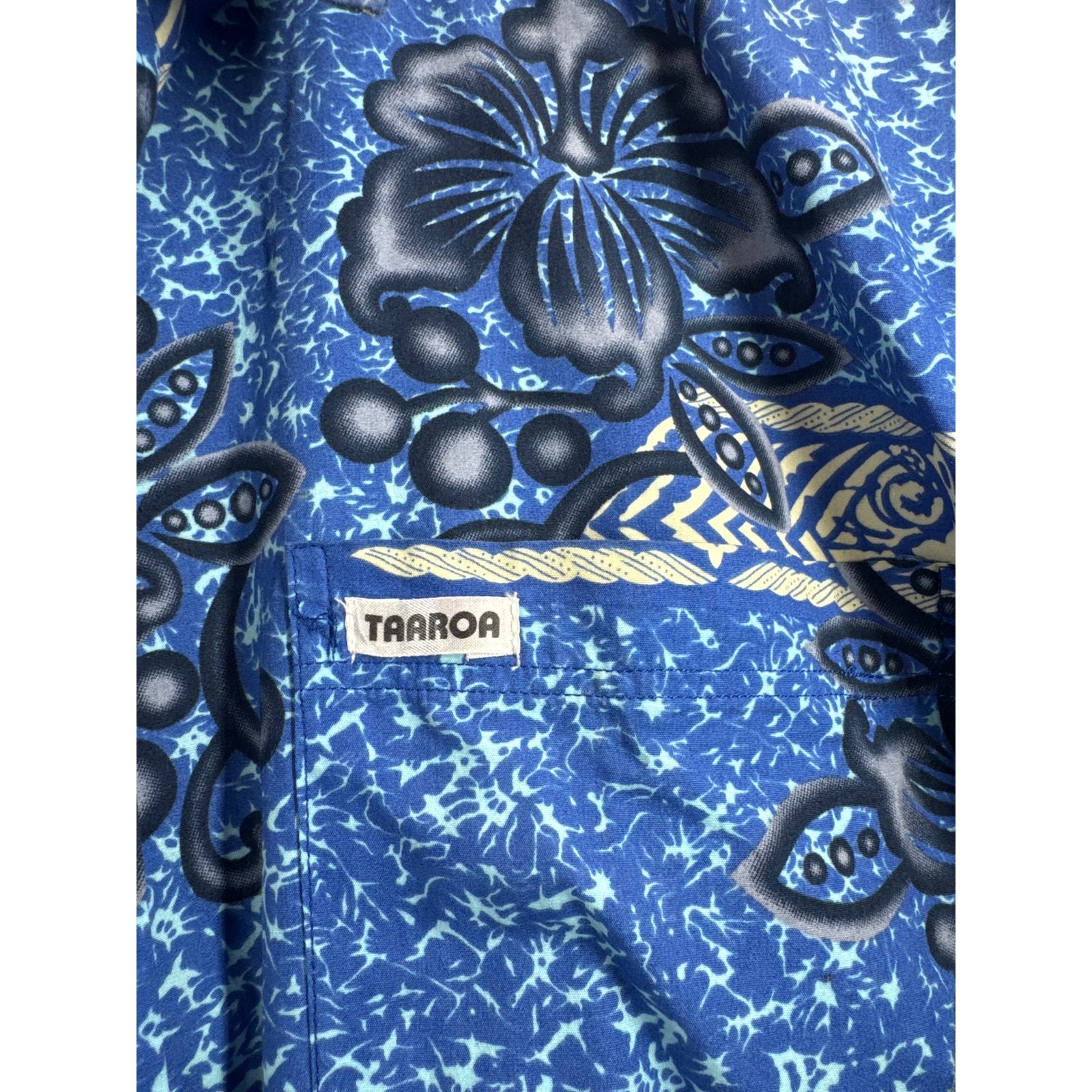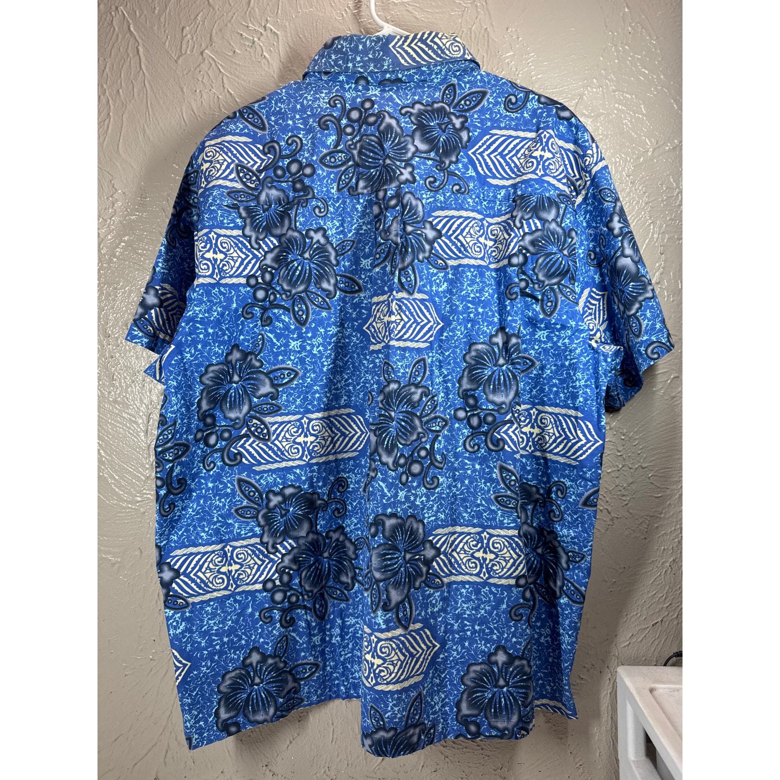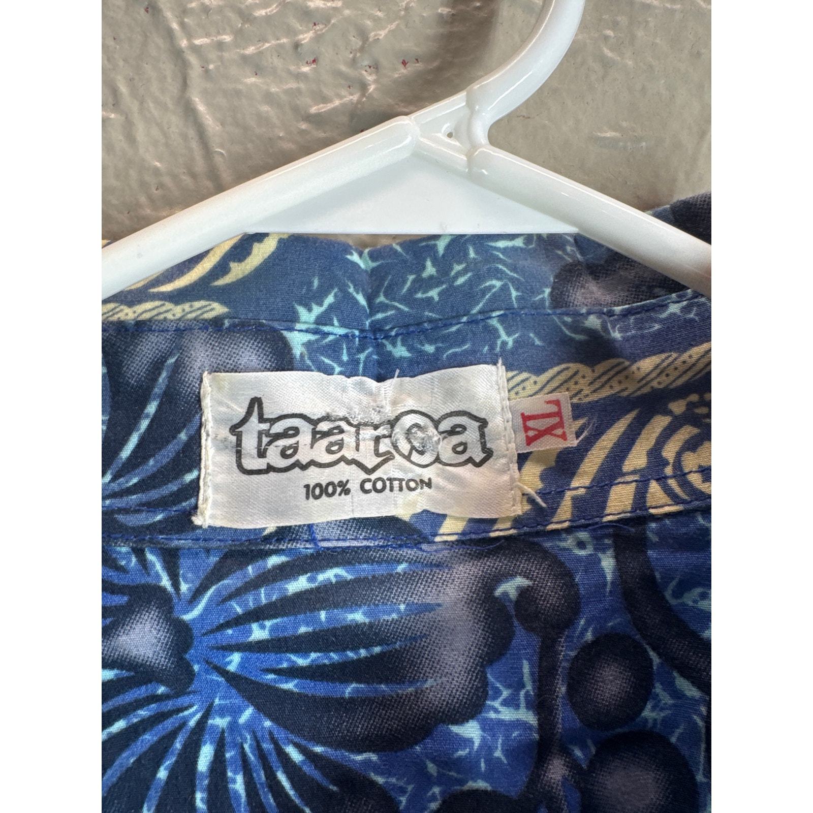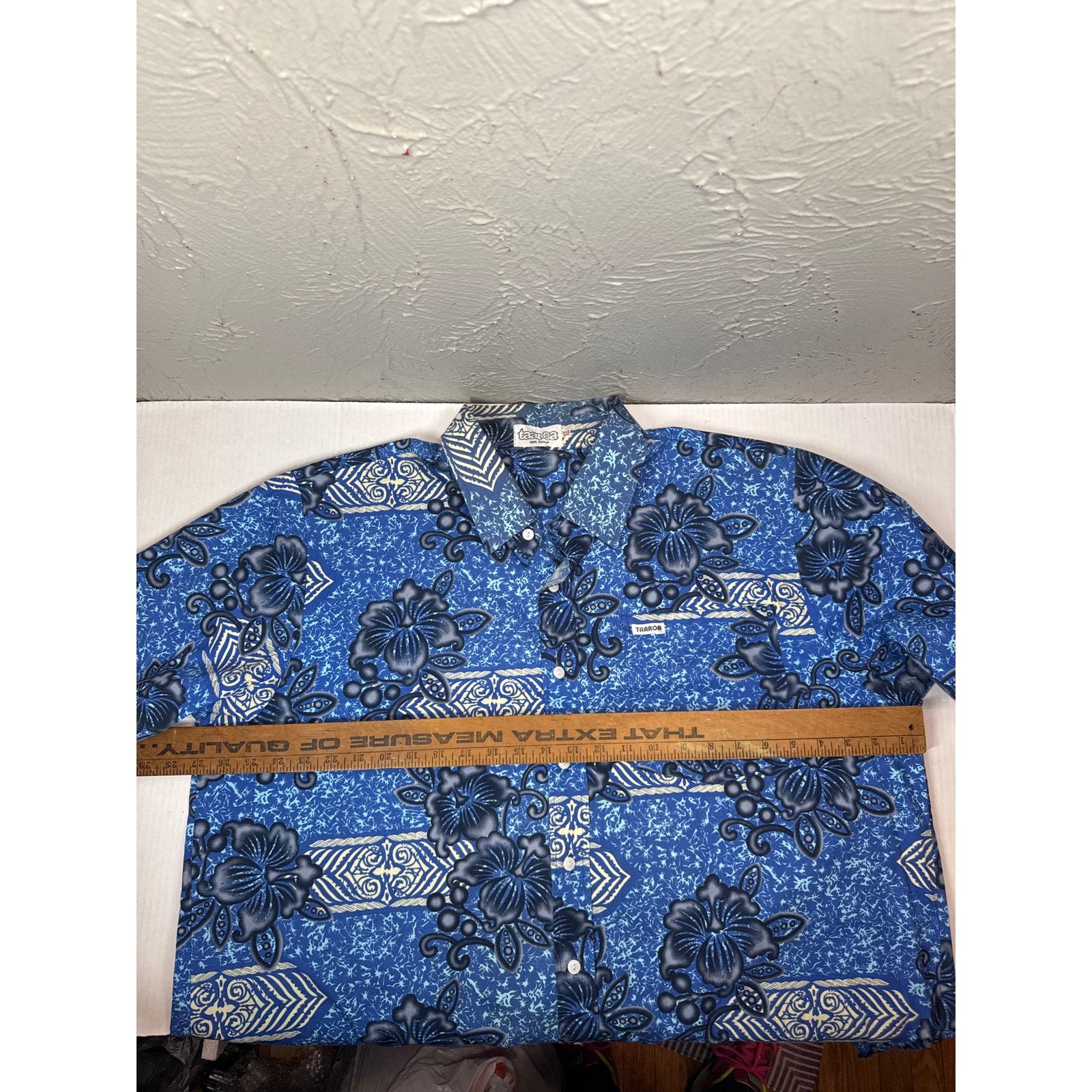 Taaroa Mens Short Sleeve Button-Up Blue Tropical Casual 100% Cotton Shirt XL